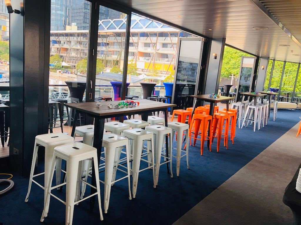 We can help with this. We recommend using lounge seating or bar furniture to create a casual arrangement to encourage easy flow of guests and socialising. This can include cocktail tables, bar stools and long tapas tables.